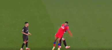 33’红牌安德里希肘击杜埃,主裁判复核录像后,黄牌改红牌。