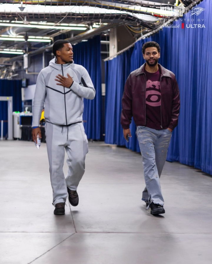 雷霆球员酷炫穿搭出场: 亚历山大&杰伦威墨镜一戴谁都不爱