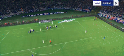 上半场进行到第11分钟,申花前场右侧角球开到禁区,蓉城门前一片乱战,申花连续打门被刘殿座和后卫封堵,最后阿苏埃补时偏出底线。