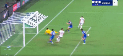 第89分钟,成都蓉城反击机会,李漠雨接球突入禁区打门,可惜将球打飞。