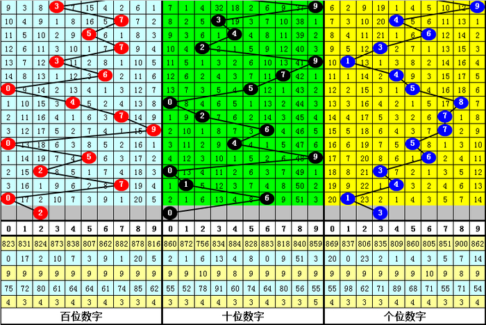 从以上统计可以看出,百十位两码合差6与6同时出现之后其下期两码合差表现最热的4个分别为:1236,本期百十位两码合差可以参考这四码中的数据。