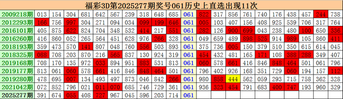 直选号码061历史上开出了11次,其下期分别开出奖号:822、005、282、049、375、454、060、796、980、936。