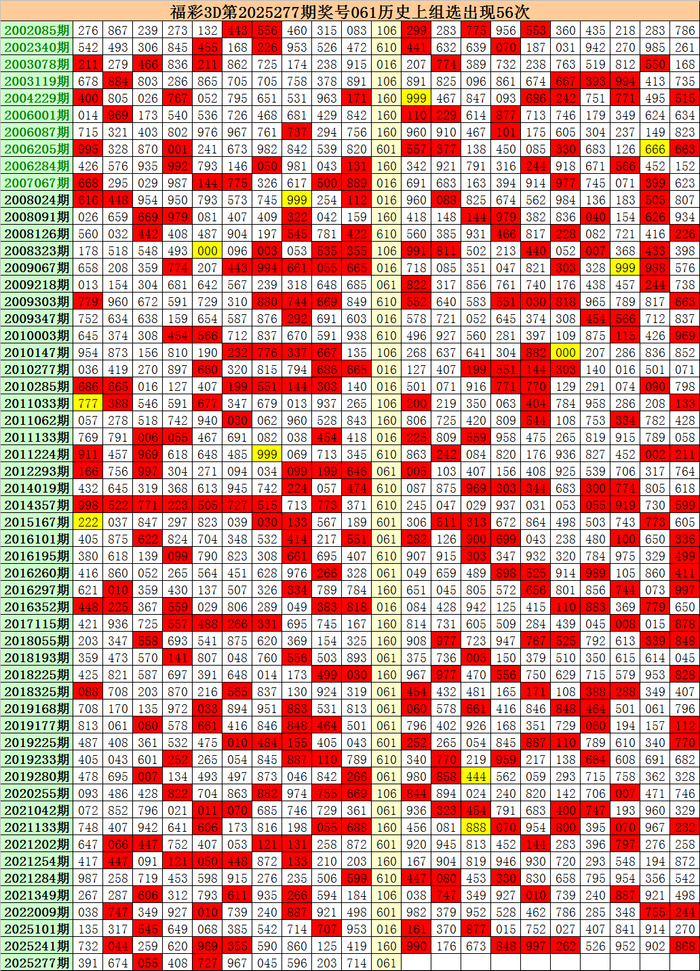 解密:首先,直选061开出之后,10期内开出豹子号0次,2003年-2025年在开出直选061之后,10期内组三累计出现28次,组三在未来第1-5期出现概率为90%,组三在未来5-10期出现的概率为70%。