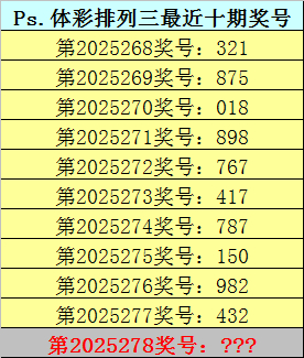 排列三第2025278期独胆参考:3