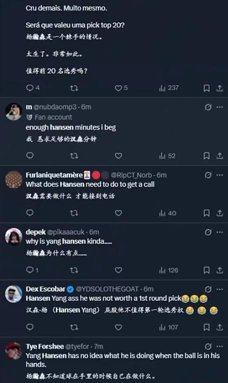 外网网友也在热议今日杨瀚森的表现: