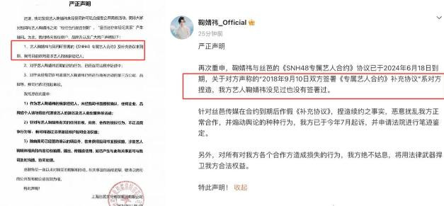 内娱这样的糟心事不在少数,鞠婧祎也曾和公司闹得不可开交,双方为补充协议的事儿各执一词,最后闹到要做笔迹鉴定的地步。