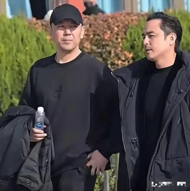 当天明道身穿黑色棉服,已经45岁的他,发际线明显后移,身材也有些发福。