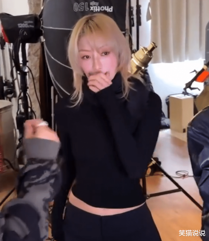 这是郑秀文在进行摄影棚拍摄时的花絮视频,在视频中可以看到郑秀文穿着黑色的长袖高领毛衣,搭配黑色的长裤。她化着精致的妆容,水蜜桃色系的腮红很适合她,衬得气色特别好。郑秀文也换了一个新的发型,是一个长碎发刘海发型,搭配这个金色的发色,跟她这一身的造型十分搭配,很有潮流时尚范。